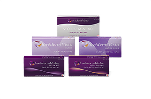 ほうれい線などにできたしわの皮下にヒアルロン酸を注入し、しわを持ち上げることで目立たなくする治療です。ジュビダームビスタ®は国内で初めて、しわ治療に用いられるヒアルロン酸注入剤として、厚生労働省により製造販売承認を受けた製品です。従来のヒアルロン酸製剤とは異なり、ぶつぶつ感のない、なめらかな質感のヒアルロン酸ゲルです。お肌に注入すると、自然な外観や肌触りに仕上げることが期待できます。